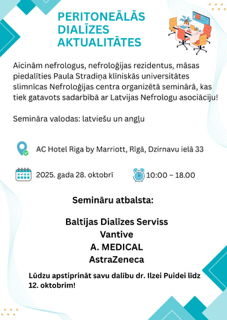 LNA sēde un Seminārs: Peritoneālās dialīzes aktualitātes